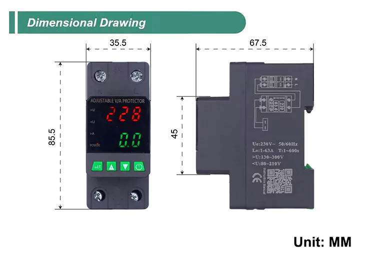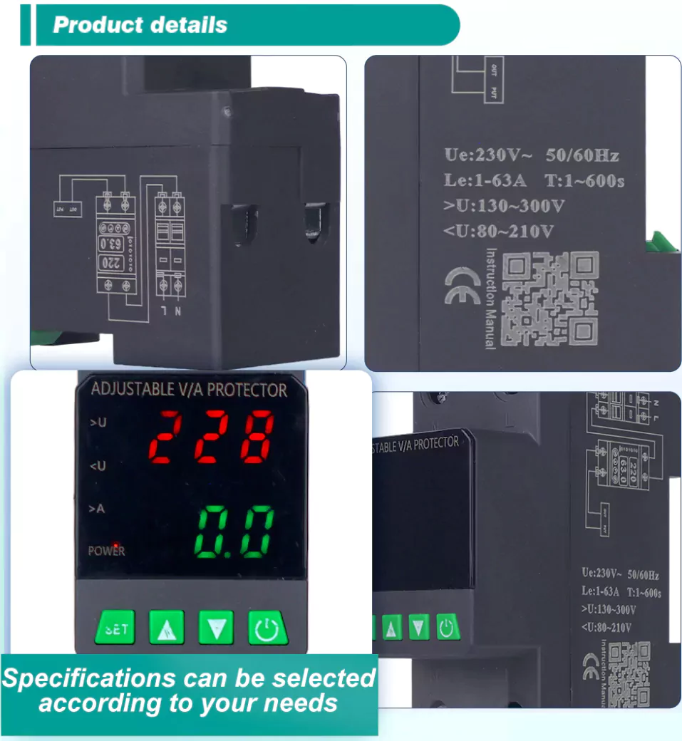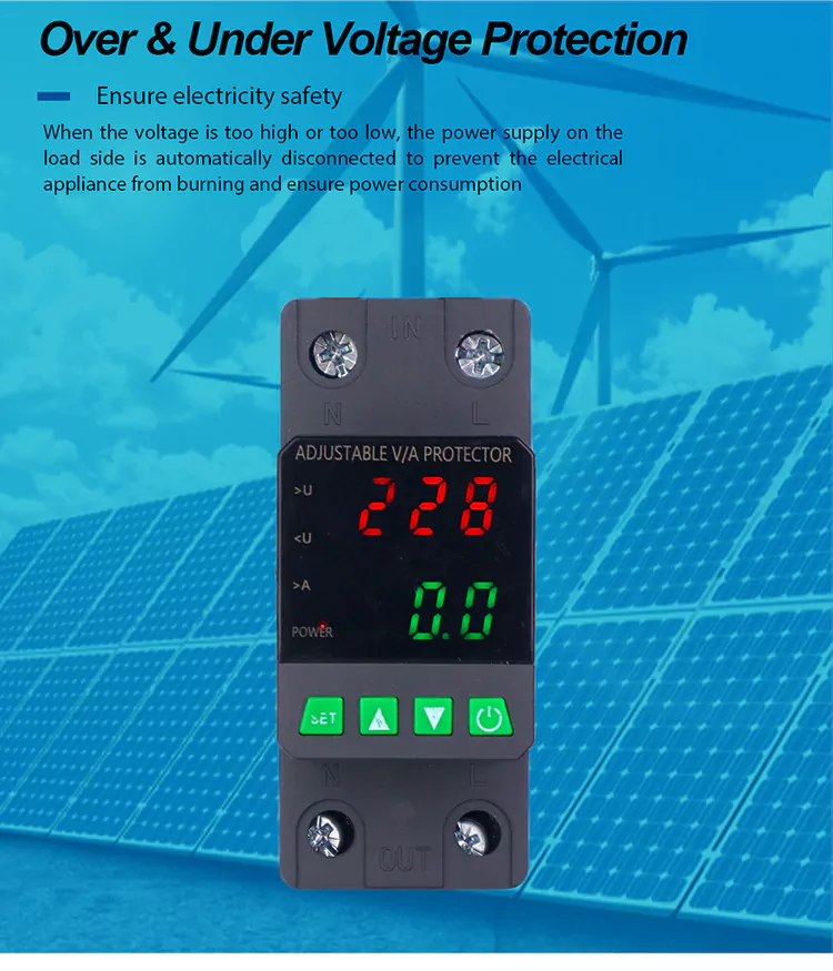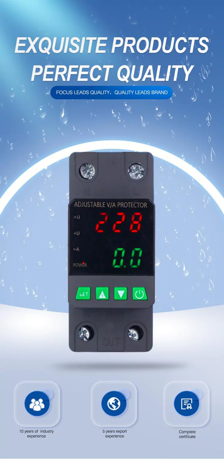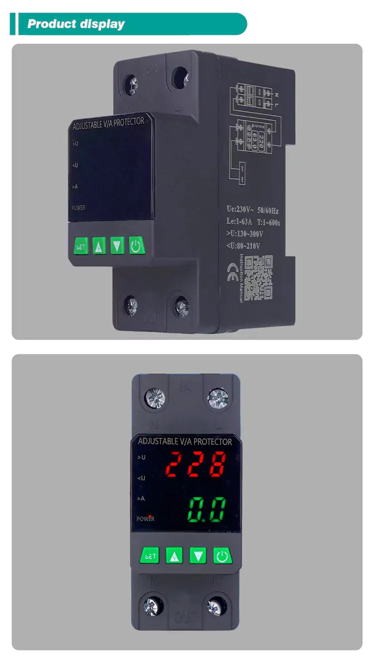 Dijital bir ekranla donatılmış ve ithal modüler elektronik bileşenlerle üretilen, yüksek güvenilirliğe ve performansa sahiptir. Koruyucu, anormal voltajlar sırasında (aşırı gerilim, düşük gerilim veya ızgara dalgalanmaları gibi) otomatik ve hızlı bir şekilde güç kaynağını keser ve voltaj normale döndükten sonra güç kaynağını geri yükler.