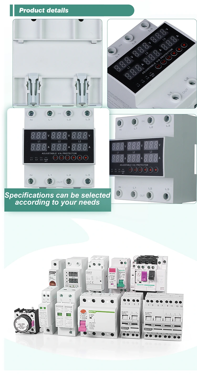 CHVP 4 Kutuplu üç fazlı voltaj koruyucu röle, elektrikli ekipmanı aşırı gerilimden korumak amacıyla tek fazlı AC ağları için mikroişlemci tabanlı bir voltaj izleme cihazıdır. Cihaz ana voltajı analiz eder ve mevcut değerini dijital göstergede görüntüler. Yük elektromanyetik röle ile anahtarlanır. Kullanıcı buton aracılığıyla mevcut gerilim değerini ve gecikme süresini ayarlayabilir. Değer kalıcı hafızada saklanır. Bağlantı için alüminyum teller ve bakır teller kullanılabilir.